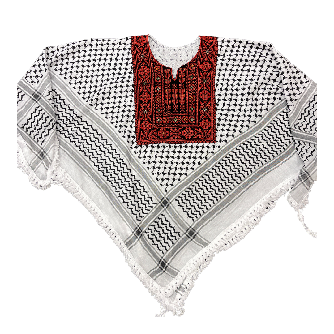 Show your solidarity with Palestine in style and comfort with this stunning kufiya-inspired poncho from Sitti Soap.
